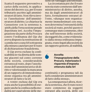 * Il profitto del reato (il risparmio d'imposta/spesa) può essere confiscato all'amministratore di fatto anche se quest'ultimo non ne ha tratto un vantaggio patrimoniale diretto e immediato.